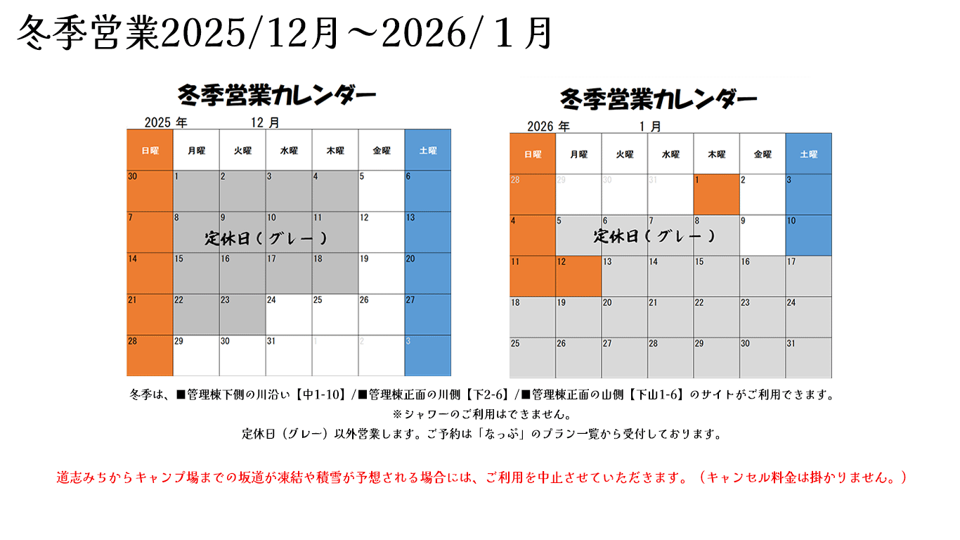冬季営業日は「冬季営業日カレンダー」をご確認ください。