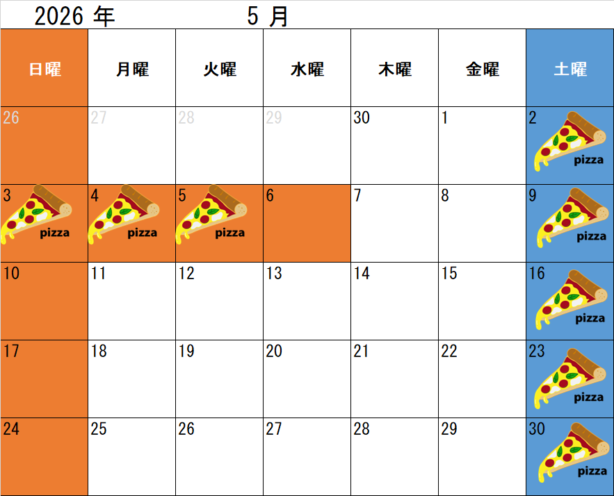 ※ピザカッター(ナイフ)ピザボード(まな板)トングと手袋はご持参ください